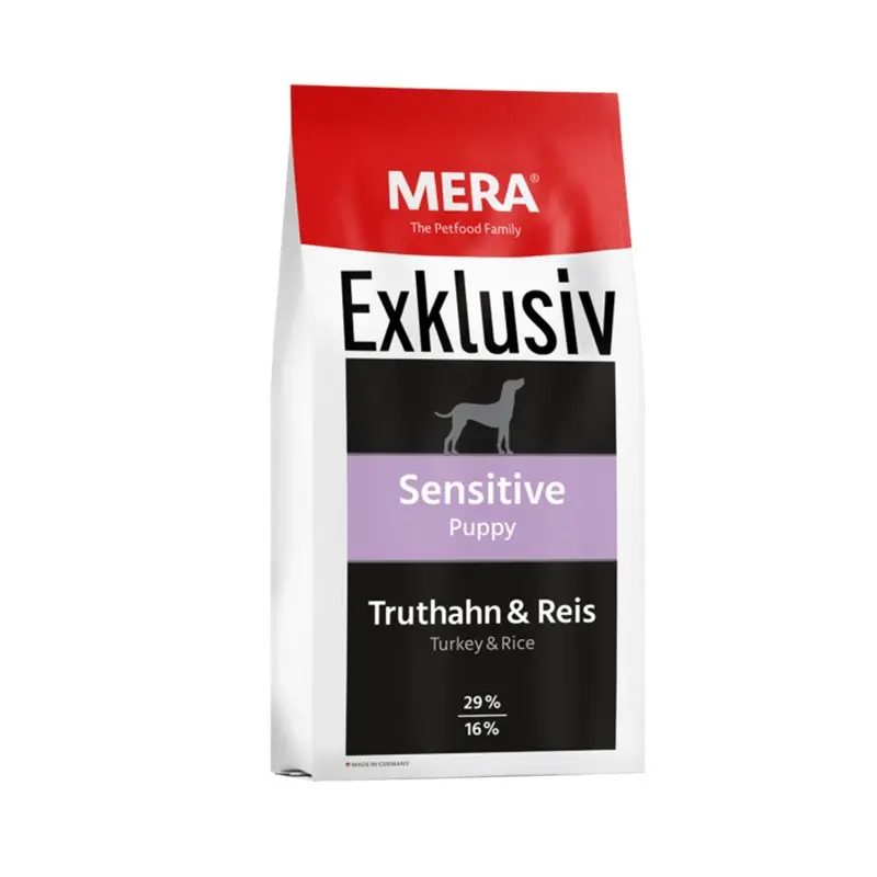Exclusive Puppy Dry Food 15kg Breeder جرو طعام جاف عالي الجودة يحتوي على 28.5٪ بروتين و 14.5٪ دهون: أفضل طعام لتربية الجراء للأشهر الـ 12 الأولى مناسب للكلاب الحوامل والمرضعاتأحجام تغليف أكبر مثالية للمربين بزيت السلمون وزيت عباد الشمس 100٪ صنع في ألمانيا بدون ملونات - بدون مواد حافظة - أحجام العبوات: 15 كجم طعام صحي تحبه الكلاب! طعام الكلاب الطبيعي من Meradog لذيذ وسهل الهضم